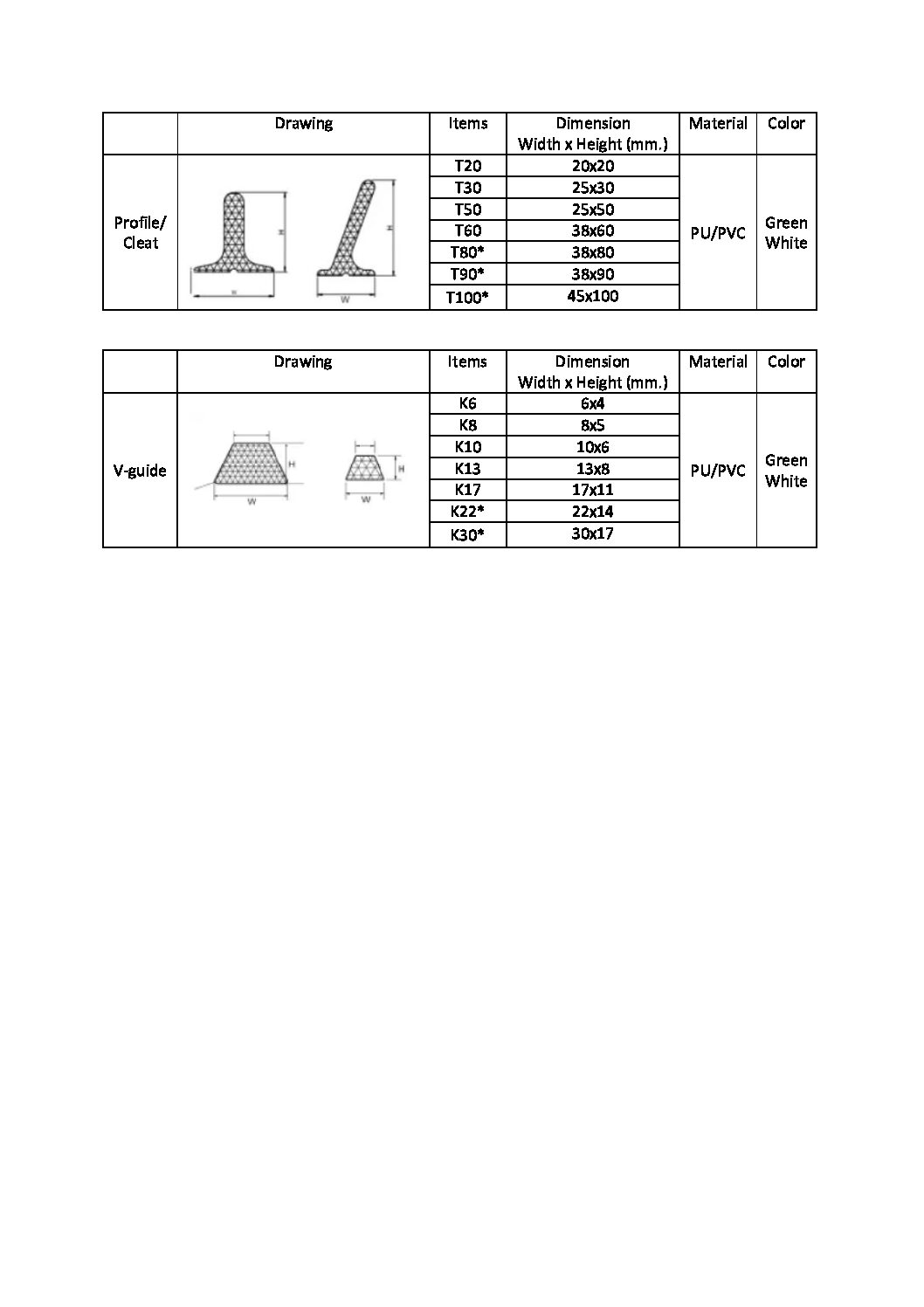 อุปกรณ์ ส่วนเสริมต่างๆ สำหรับติดสายพานลำเลียง (Accessories & Profile)